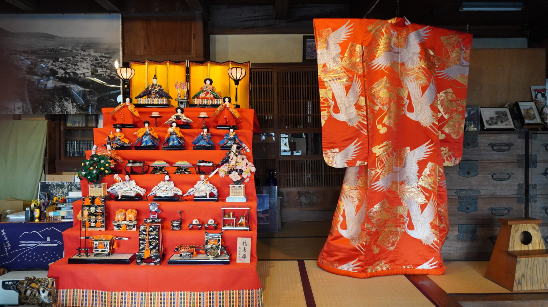 北条にもおひなさまが舞い降りたー(笑) 北条ふれあい館では豪華七段かざりのおひなさま。なんとその隣にはさらに豪華な打掛(うちかけ)がお目見えです...