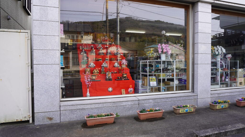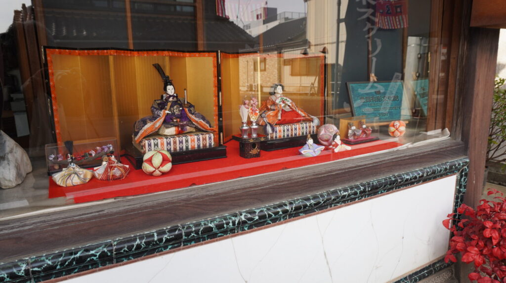 こちらは店頭のショーウィンドーでお出迎えのお内裏様とおひなさま。